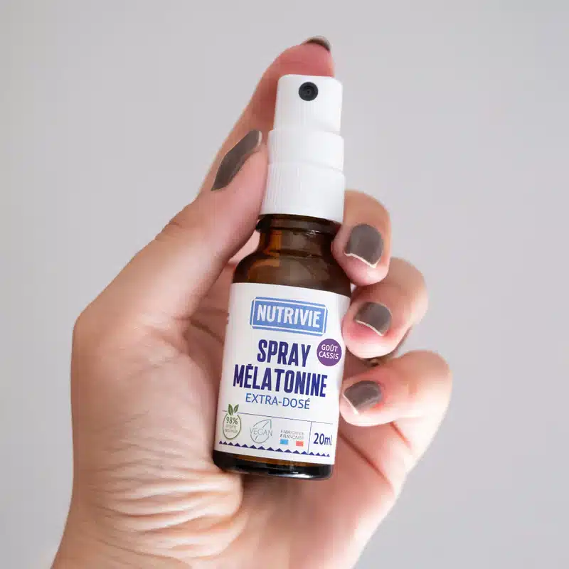 | Spray mélatonine extra-dosé | 20 ml, environ 6 semaines | Dès la première nuit | Endormissement difficile, décalage horaire, nuits compliquées ponctuelles | Usage ponctuel uniquement. Déconseillé en cas de maladies auto-immunes, épilepsie, asthme. |